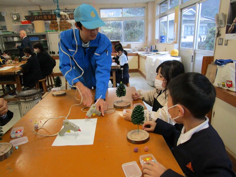 12月18日(木)、小学生が八代農業高校泉分校へおじゃまして、ネイチャークラフト教室を行っていただきました。