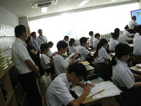 限られた時間でしたが、5校時の授業を参観していただきました。教室には、サーキュレーターを設置していただき、随分涼しく感じました。