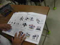 レタリングや色彩など、教科書のページを示しながら、学習内容の想起が行われていました。
