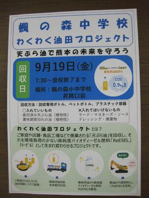 来週、9月19日(金)は、わくわく油田プロジェクトによる廃油回収日です。