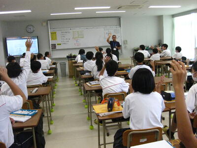 どのクラスも熱心に授業に取り組む姿が見られ、学校評議員の方からも「生徒も先生方も楽しく、元気に授業されているのが印象深い。」と話されました。