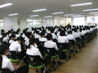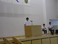 生徒たちが、自らの目標を達成するために、自分と向き合いながら、そしてなかまとともに、一歩一歩着実に取り組んでいきたいという思いを確認した意見発表でした。