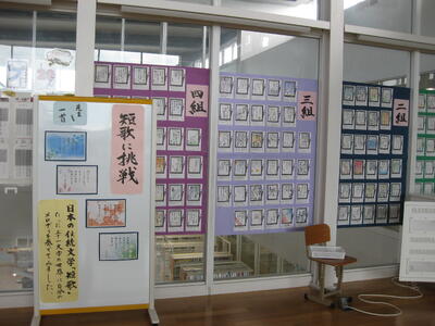 2年生の国語では、短歌について学習しました。3階には、生徒たちの短歌が掲示してあります。