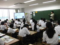 後半は、これからの進路選択に関わる流れを進路指導主事が説明しました。熊本県内の公立高校の出願がWeb申請に代わることに伴う登録や手続きの流れを資料を用いて丁寧に説明しました。