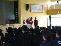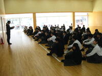 本校小学校6年2組のみ多目的室で授業を受けました(1組と3組はオンライン配信により、教室で受けました)。