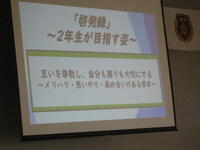 学年の啓発録として「互いを尊重し、自分も周りもたいせつにする。~メリハリ・思いやり・高め合いのある学年~」と発表しまた。