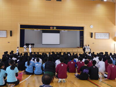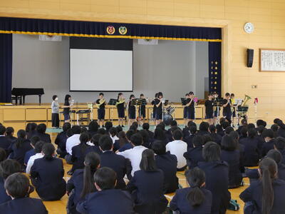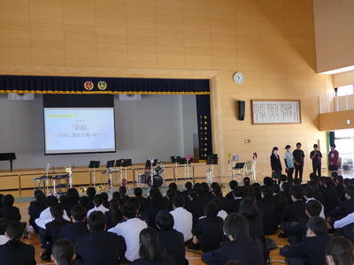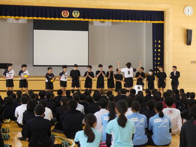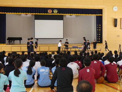 16日に新入生歓迎会が行われました。まず生徒会のみなさなんから今年度の生徒会テーマ「彩結」の発表と説明がありました。その後は部活動紹介です。各部活動、分かりやすく工夫された部活動紹介が行われました。部活動によっては飛び入り参加のものもあり、1年生のみなさんも楽しんで参加していました。(一部の部活動の写真です。)