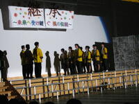 「水俣学習」で水俣病資料館で語り部をされている杉本肇さんとの出会いを通して、水俣病のこと、ご自分の家族のこと、現在の水俣のこと、そして未来を生きる生徒たちへのメッセージをはじめとして、たくさんのことを学び、それらを表現していきました。また、自分たちにとっての「もやい」とは何なのかについて発表していきました。最後はそれらの思いを「2001年 水俣ハイヤ」として学年で踊りました。1年生の思いが形となった発表でした。