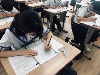 今週26日(月)に全校生徒を対象に実施した英検IBAに引き続き、本日(30日)の6校時、3年生は全員、1・2年生は希望者が英語検定を受検しました。3年生については、公費による受検料全額補助があり全員受験となりますので、英語の授業としてカウントしました。また、2年生については、教育公務員弘済会から一部補助があります。