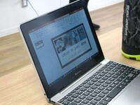 もみじ学級では、12月に実施する販売会のチラシをタブレットPCで作成し、作成上の工夫について電子黒板に写しながら全体で共有していました。