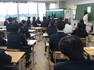その後、私(校長)からの話では、やがて8周年を迎える熊本地震を振り返り、その際に全国全国の皆様から数多くの支援をいただいたことを思い出しました。また、その復興のための様々な事業で熊本県は景気が良くなったこと、その後もTSMCの進出で一種のバブル経済状況になっていることを述べ、いつかバブルがはじけたとしても、自分の人生をしっかり歩んでいける力を、今この中学生の時期に身に付けてほしいという旨を話をしました。