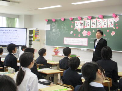 9日に入学式が行われました。今年の新入生は100名ちょうどです。みんな緊張しながらも大きな声で返事ができていました。校舎も通学路も小学校と同じですが、新しい中学生の教室で充実した中学校生活を送ってほしいと思います。式後は、1年部の職員紹介、学活がありました。