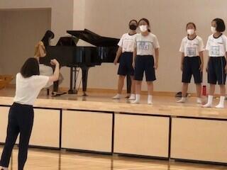 本日(3日)の4時半頃、体育館のステージで音楽部のメンバーが、明日のNHK全国学校音楽(合唱)コンクール(熊本県コンクール)へ向け、出勤している小・中学校の先生方を前に仕上げのリハーサルを行いました。なお、矢野教諭の友人でピアノ塾講師の吉田さんに伴奏をお願いしており、矢野教諭の先輩で声楽家の興梠さんには4回に渡りご指導をいただきました。