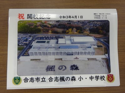 | 開校記念品として、本校PTAより、航空写真等をプリントしたクリアフィルを配付しております。今年度は、コロナ禍の影響でPTAの活動がほとんどできておらず、そのため余剰となった予算を還元させていただくものです。お子様と一緒にご覧下さい。 |
