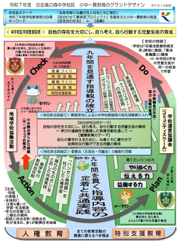 また、令和7年度の合志楓の森中学校区の学校教育目標を