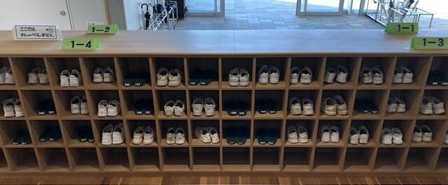今朝も「みんなの玄関」ですが、生徒の下足箱を撮影しました。スリッパが入ってる生徒は学校に来ていませんので、この写真から、学校の現在の状況を推察していただくことができると思います。