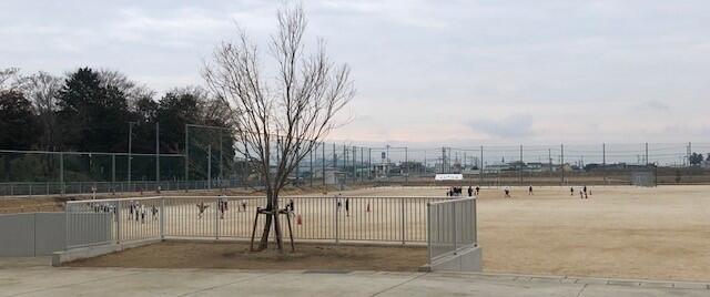 校舎東側には、将来さらに児童生徒が増加して教室数が足りなくなった場合のために、増築用のスペースが確保されてます。ここを現在は「芝生広場」と呼んでいますが、特に小学生には鬼ごっこをする格好の遊び場となっています。