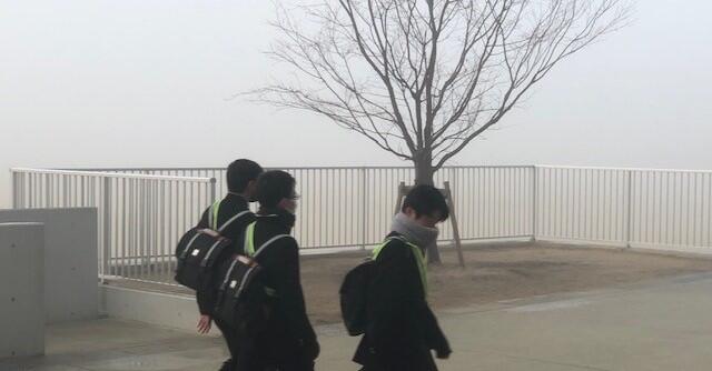 今朝は、霧が凄かったですね。職員室(小学校職員側)前から「人文字の楓」の方向を撮影しました。しかし、さほど寒さは感じません。冬の冷たい空気に暖かい空気が入ってくると起きやすくなる現象だと思われますのでは、春が近くまで来ている証なのかもしれません。