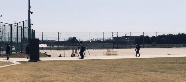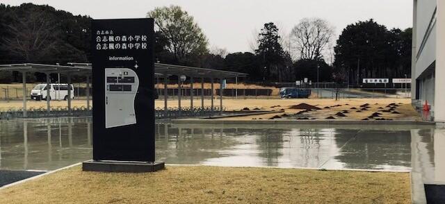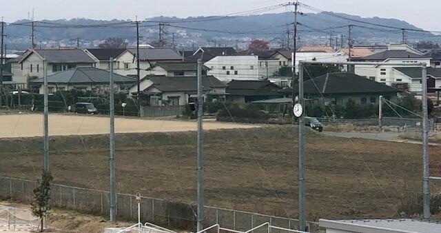 みんなの玄関から運動場を写しました。運動場にしても体育館にしても、広々と使える合志楓の森小学校・中学校の児童生徒は、やはり他の小中学校の児童生徒から見れば、羨ましがられる環境にいるのではないかと思います。