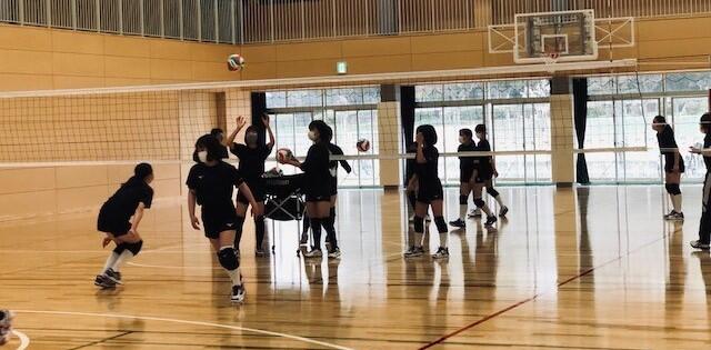 体育館で練習をしているバレーボール部の様子を撮影しました。本年度は、担当者(顧問)として 坂井 教諭1人しか配当できないため、同好会として活動をしてきましたが、令和4年度は職員数が増え、複数の担当者を充てることができるため「部活動」へ昇格する予定です。