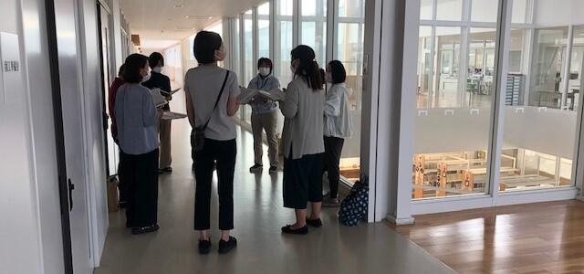 3階の美術室前の廊下から撮影しました。朝の8:15。各教室では朝の会が行われています。もみじ学級(特別支援学級)の生徒たちは、交流学級に入っていますので、その間を利用し、特別支援教育部の先生方は、特別支援教育コーディネーターの 坂井 先生を中心に打ち合わせを行っています。これは基本的に毎朝行われているルーティーンです。