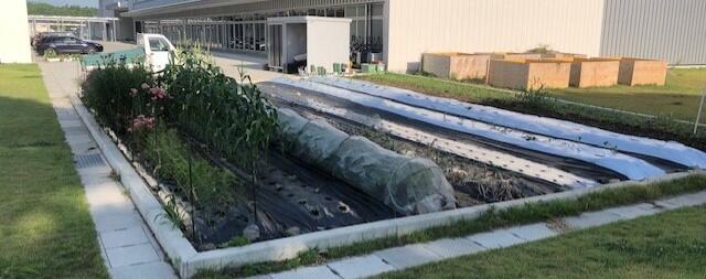 学校園を撮影しました。園芸が趣味の私(校長)は、小学校の3年生のアオムシの観察のためのキャベツを植えたり、わかば学級(特別支援学級)の子供たちが育てるサツマイモの畝を立てたり、結構お節介をやいています。しかし、小学校の先生方から「(中学校の)校長先生、ありがとうございます。」と感謝の言葉を受けると、とても嬉しいものです。