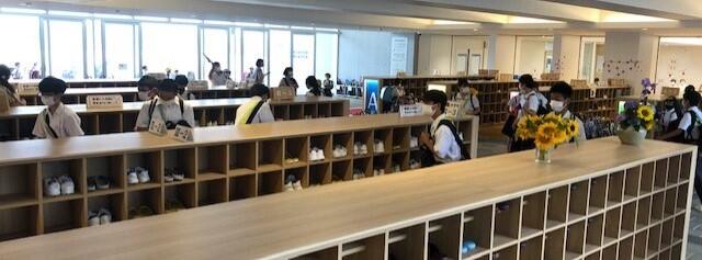 東ロビーを撮影しました。園田教材の方がポスターカラーのセットを販売しておられ、1年生が次々に購入に来ていました。このような学用品等の販売は、原則、生徒が直接、業者さんから購入し、教員が間に入ってお金や商品をお預かりすることはありません。また、盗難や紛失を防ぐため、朝の始業前に行っています。