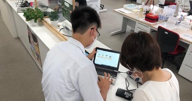 本校の職員室には、市役所にもあるようなカウンターがあって、そこで生徒と教師がやりとりする場面がよく見られます。今朝はその場所で、学習文化委員長の 髙橋 君が、担当の東野先生に何やらレク(説明)をしています。それも自分のタブレットを見せながら‥‥。