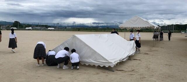 天気予報では、台風4号が、明日(5日)、九州に接近・上陸する可能性が高いとのことです。台風対策ため、熱中症対策で常設しているテントを折りたたむ作業を、陸上部、野球部、ソフトテニス部、体育委員の生徒が手伝ってくれていました。今度の台風は雨台風と言われていますが、そこまでしておくと安心です。