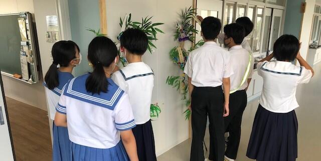 3年2組と3組の間の廊下から撮影しました。本日は7月7日、「七夕」です。例年であればまだ梅雨明けしておらす、織姫と彦星はなかなか会えないのですが、今晩の天気予報は曇。今年は再会が「叶う」といいですね。