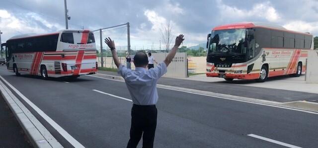 朝、出勤すると、東門では3台のバスが出発するところでした。本日、合志楓の森小学校の5年生は、「水俣に学ぶ肥後っ子教室(小学校HPへジャンプ)」で、日帰りの校外学習へ出かけます。