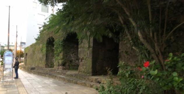 旧崇元寺は、琉球王国に縁のある臨済宗の寺院ですが、沖縄戦で焼失し、琉球石灰岩の門だけが残っています。ちょっとうんちくを書きましたが、全て学年主任の 町田 先生からの受け売りです。町田 先生はツアーガイドが務まるぐらい沖縄に詳しく、私((校長)は左団扇です。