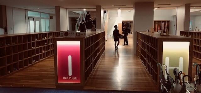 みんなの玄関から東階段(東ロビー)の方向を撮影しました。昨晩の雨から続く曇天のため、玄関の中は薄暗いですが、各学年の靴箱を区別するアルファベットが書かれた間接照明は、こんな日の方がカッコよく見えます。ちなみIは中学3年生、Hは小学年生6用の靴箱です。