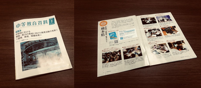 文部科学省が著作している「中等教育資料(1月号)」のグラビアーページに、特色ある教育活動の熊本県の一事例として、合志楓の森中の実践が載っていましたので、それを撮影しました。著作権の関係で、PDFファイル等の複製を載せることはできないので、こういう載せ方にしましたが、同じ場面の写真が過去の学校生活(ここをクリック)にあります。また、写真のキャプションは次のとおりでしたので、引用しておきます。