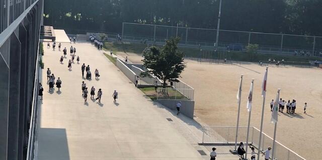 おって、本日の自家用車でのご来校は、事前にやむを得ない理由のご説明とともにお申込みいただきいた方のみ許可させていただいております(駐車券を配布)。徒歩または自転車でのご来校に、ご理解ご協力をお願いいたします。