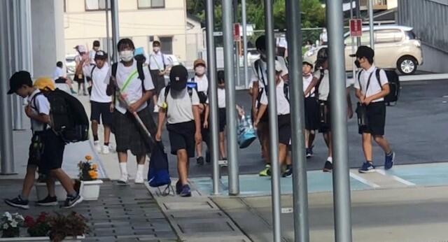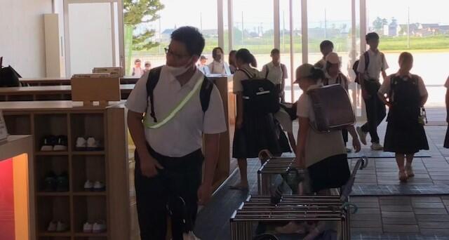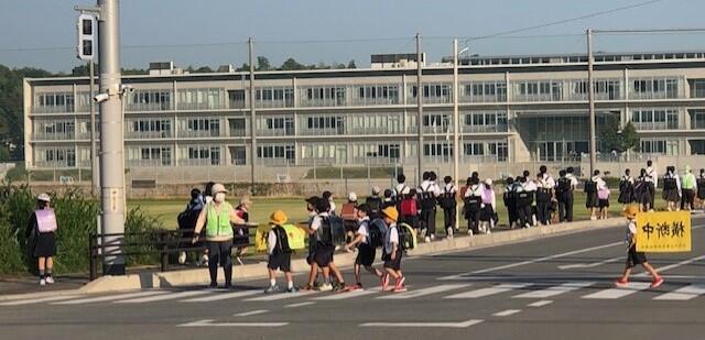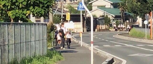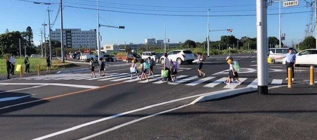 夏休みも明け、本日から前期後半が始まります。8月23日から新しい御代志の交差点が利用できるようになり、御代志方面から登校する児童生徒の様子を見に行ってみました。