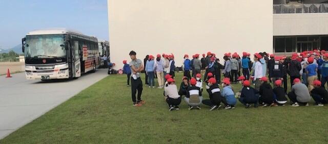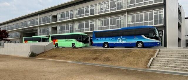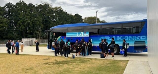 朝の8:00。「かえでの道」には、修学旅行団を熊本空港まで運んでくれるバスが待機していました。