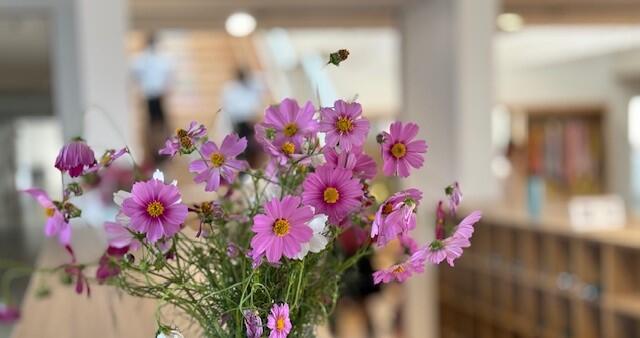 「みんなの玄関」に、坂本 先生がコスモスを生けてくださっているので、iPhone15のポートレートモードで撮影してみました。猛暑も去って、すっかり秋となりましたね。「〇〇の秋」。何をするにも適した季節です。私(校長)は最近、ご飯が美味し過ぎて困っています。なお、私(校長)が愛用していたiPhoneⅩは、遂に故障(画面が変)になったので、先週iPhone15に買い換えたばかりです。