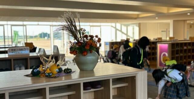 みんなの玄関にススキを飾っていただきました。ここ数日の11月とは思えない暑さから一転し、今朝は冬到来を予感させる冷え込みでした。