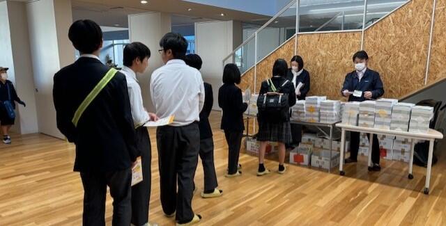 東ロビーには、来年度の入試に向けて、進路対策教材を購入するため並んでいる2年生の様子が見られました。こんな厚いテキストを見て暗い顔をしているのかと思いきや、生徒たちの表情は意外と晴れやかです。「なるほど、宝くじを買ったら当たった気がするのと一緒だな。おそらく、もう高校に通ったような気がするのだろう?!」と推察しました。いずれ現実と向き合うことになるでしょうか、目を背けず頑張ってほしいと思います。