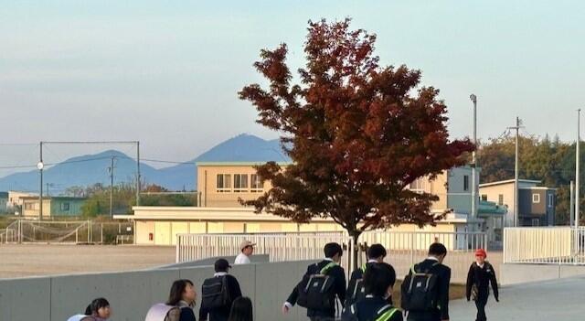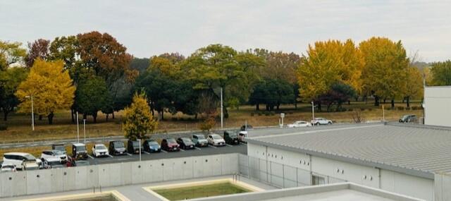 私(校長)のお気に入りの景色であるもみじ学級(3階)から菊池恵楓園の森方向を撮影した「秋」バージョンです。少し雨が降ってくれたおかげで木々の色付きも、濃く見え秋の深まりを感じます。