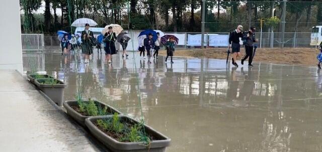 職員室前ベランダから東門方向を撮影しました。昨日は気持ち悪いぐらいの暖かさでしたが、この雨が終われば、再び冬の寒さが戻りそうです。