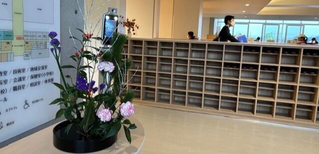 新年らしい玄関にしようと、私(校長)の妻に、生け花を生けてもらいました。「小原流」という流派で、大きく斜めだったり、広く空間とったりと、芸術に疎い私に意味は分かりませんが、雰囲気はそれらしくなったと思います。