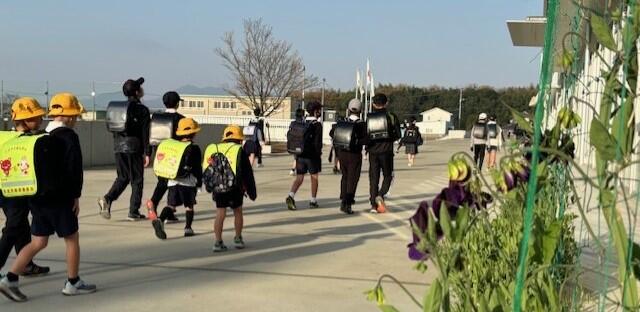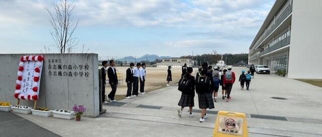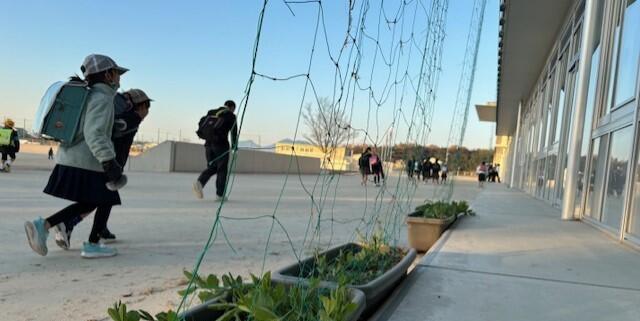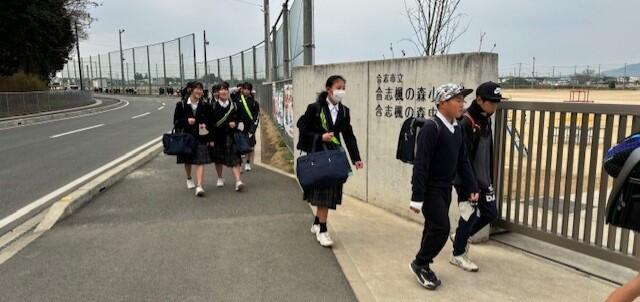 令和5年度最後の児童・生徒の登校風景です。本日、小・中学校ともに修了式が行われ、本年度の教育課程が修了します。