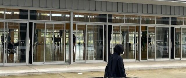 校舎南側のコンクリート舗装の部分「かえでのみち」は、通常自動車を駐車することはありませんが、本日は小学校の卒業式で、駐車場にご依頼品の皆様用のスペースを空けるため、小学校の先生方の車が駐まっています。