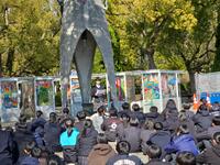 平和公園で、ガイドさんによるフィールドワークをし、その後、平和集会をしました。
