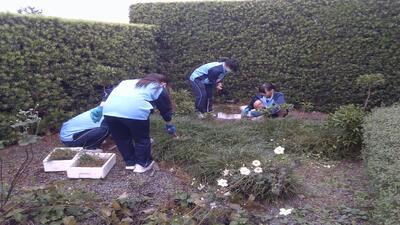 3~4名ずつの班を作り、それぞれ受け入れてくださるご家庭を訪問しました。窓ふき、草取り、木の剪定等のお手伝いの他、お手玉を習ったり一緒におやつ作りをさせていただいたりした班もあり、大変貴重な体験でした。有意義な活動をさせていただき、受け入れてくださったご家庭には感謝しています。また実施までに、事前打ち合わせ等で民生委員の皆様にも大変お世話になりました。どうもありがとうございました。