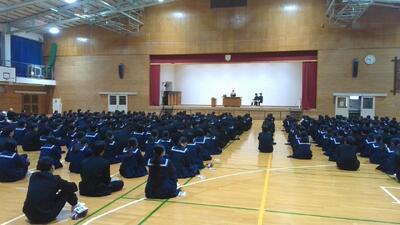 12月24日(水)に2学期の終業式がありました。たくさんの行事を経験し、仲間との絆が深まり、クラスも一層団結した学期となりました。式では、各学年の代表者が「2学期を振り返って」という作文を発表しました。それぞれの学びや今後の抱負が述べられ、全校生徒一人ひとりもお互いの成長を感じることができたと思います。3学期の活躍も楽しみです。