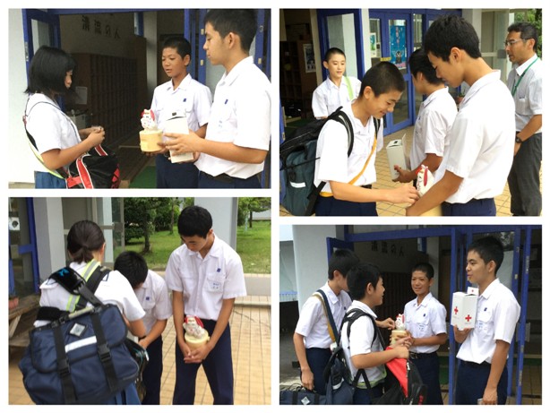 鹿北中学校では赤い羽根共同募金に取り組んでいます。