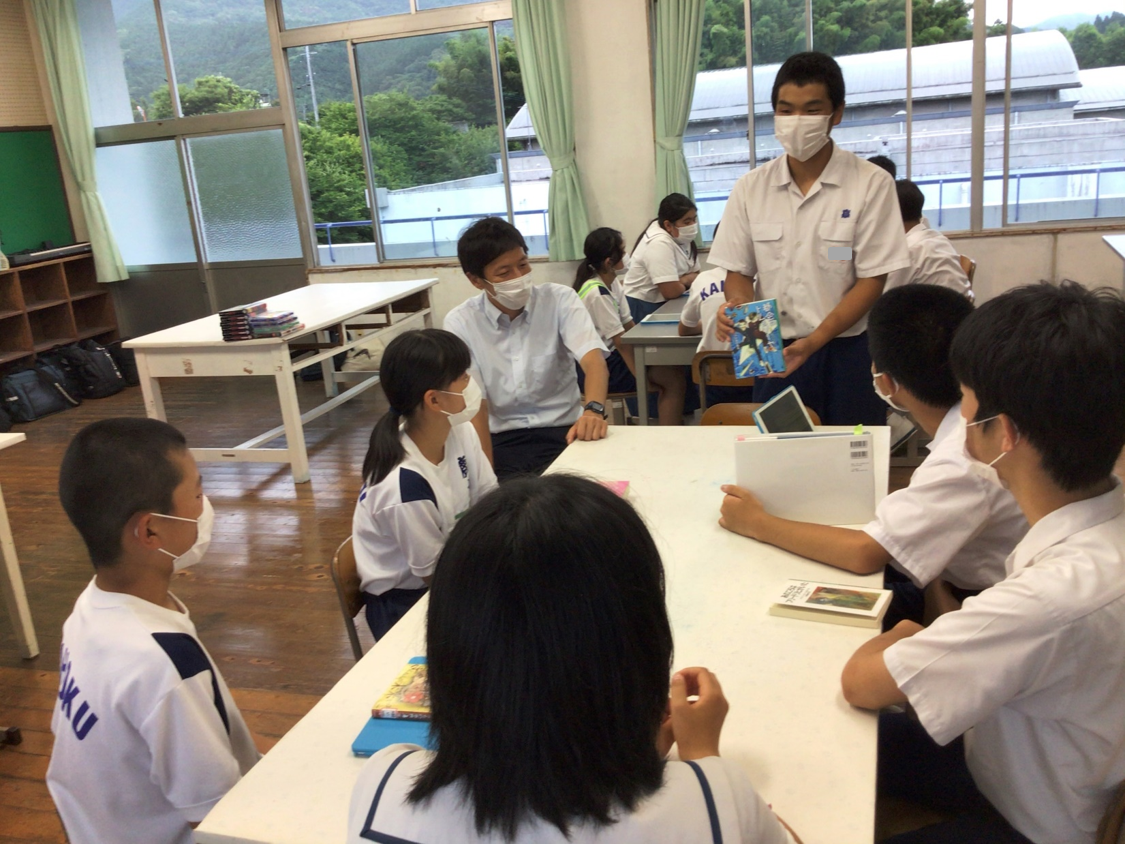 6月24日(金)7校時に校内ビブリオバトルを行いました。自分のおすすめ本を紹介し合うことで読書への関心を高めてほしい、まだ読んでない新たな本と出合いをしてほしい、お互いに紹介し合うことで心のきずなを深めてほしい、という願いを込めた学習図書委員会による企画です。学年をまたいだ縦割り班で行ったのですが、学習図書委員さんが準備・運営を丁寧にしてくれたおかげで、楽しく熱いバトルが繰り広げられました。
